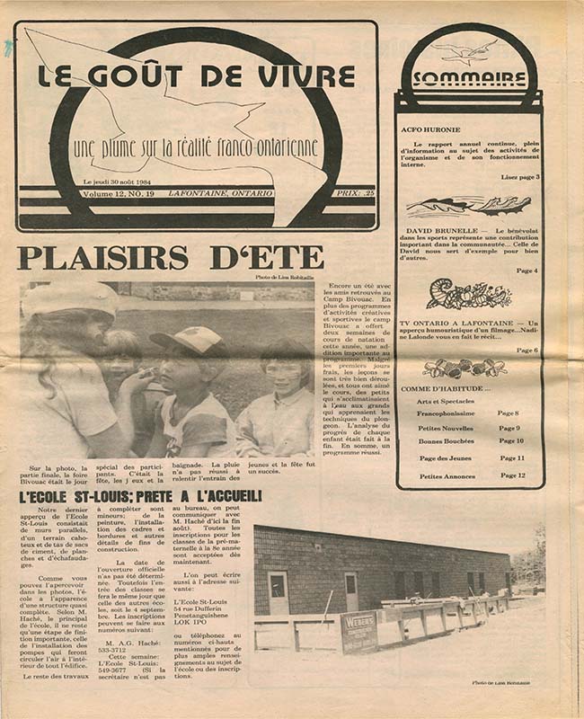 Le Goût de vivre (Vol.12 No.19) – 30 août 1984