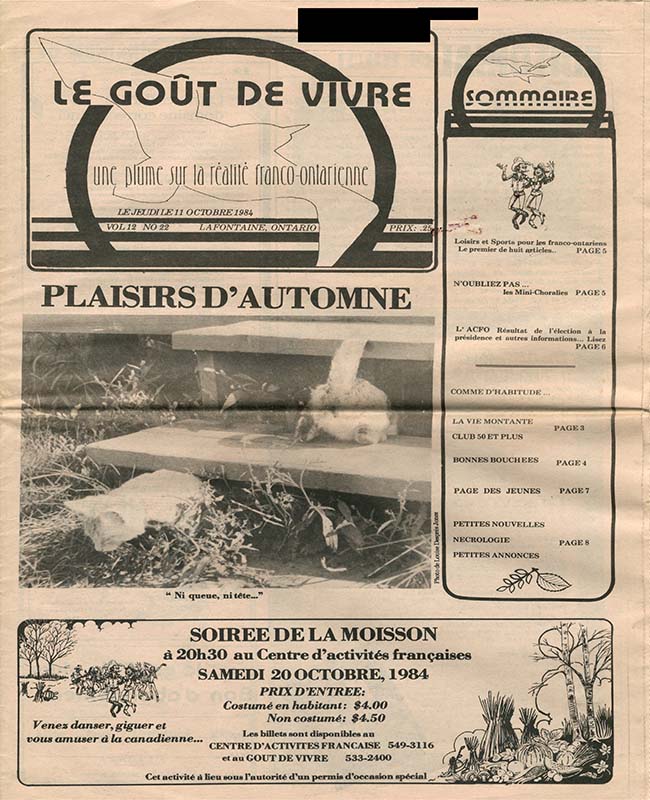 Le Goût de vivre (Vol.12 No.22) – 11 octobre 1984