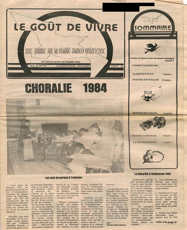 Le Goût de vivre (Vol.12 No.23) – 25 octobre 1984