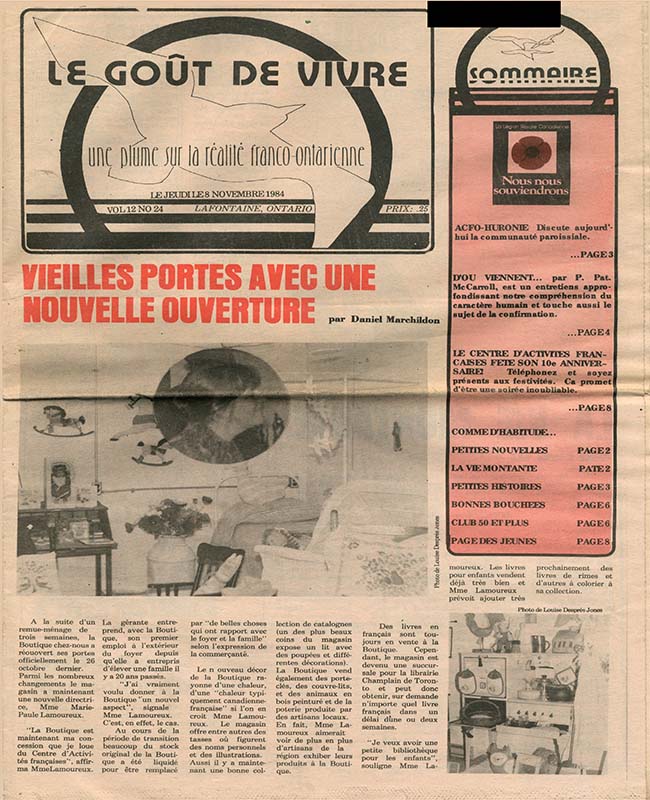 Le Goût de vivre (Vol.12 No.24) – 8 novembre 1984