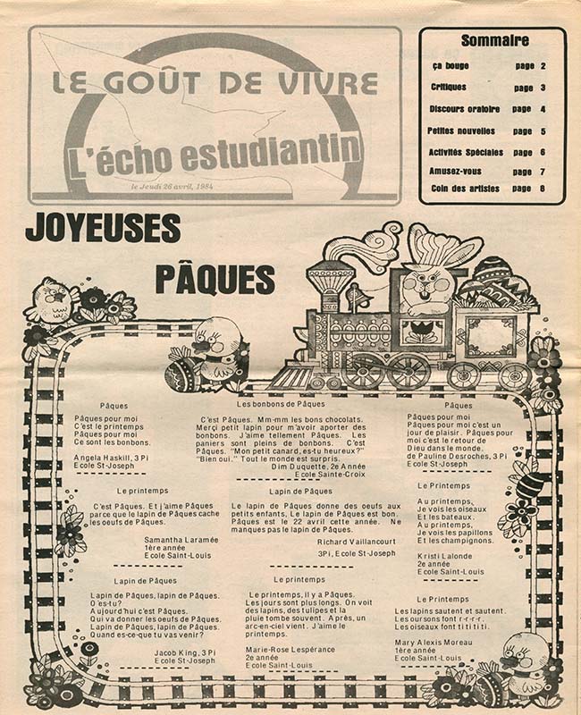 L’écho estudiantin (Vol.02 No.04) – 26 avril 1984
