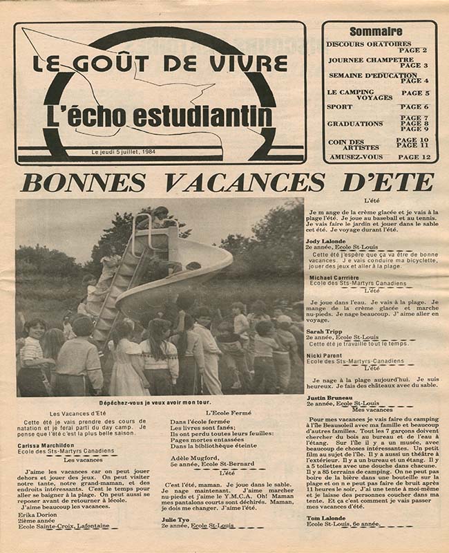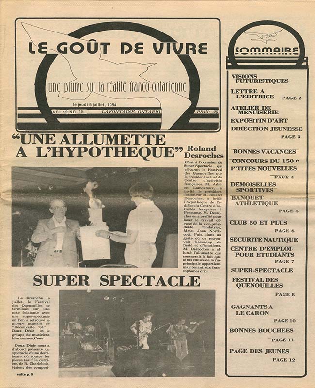 Le Goût de vivre (Vol.12 No.15) – 5 juillet 1984