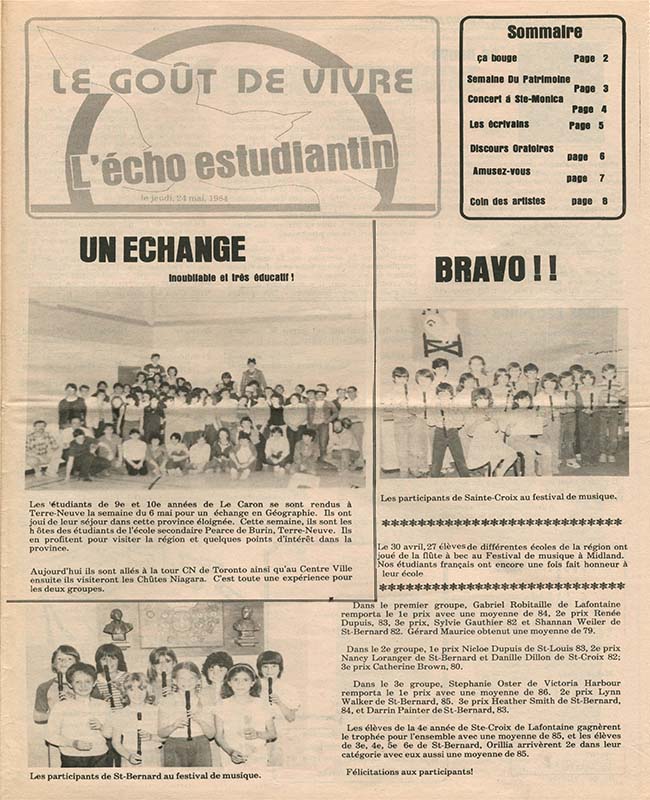 Le Goût de vivre (Vol.12 No.09) – 26 avril 1984