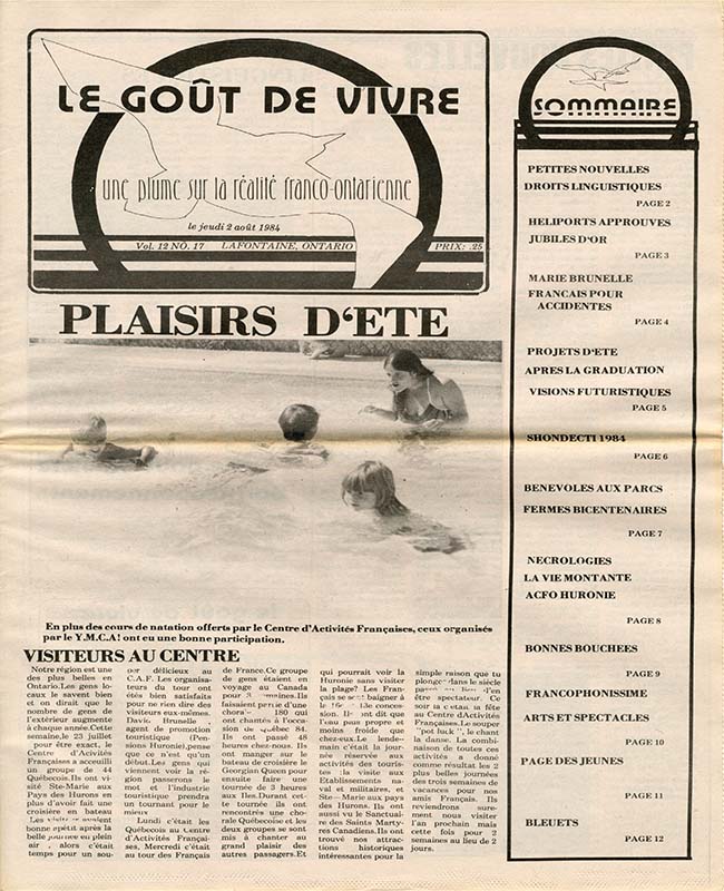 Le Goût de vivre (Vol.12 No.17) – 2 août 1984