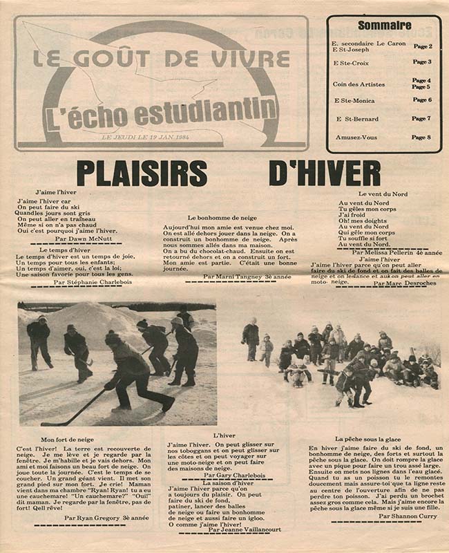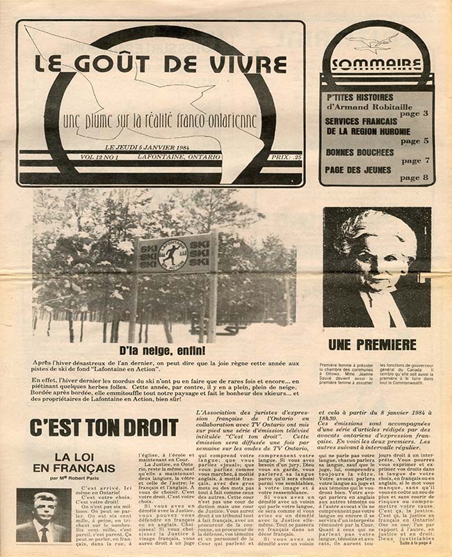 Le Goût de vivre (Vol.12 No.02) – 19 janvier 1984