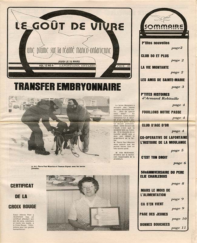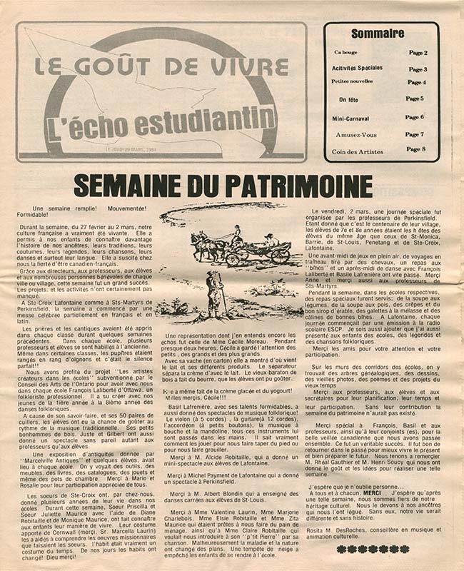 Le Goût de vivre (Vol.12 No.07) – 29 mars 1984