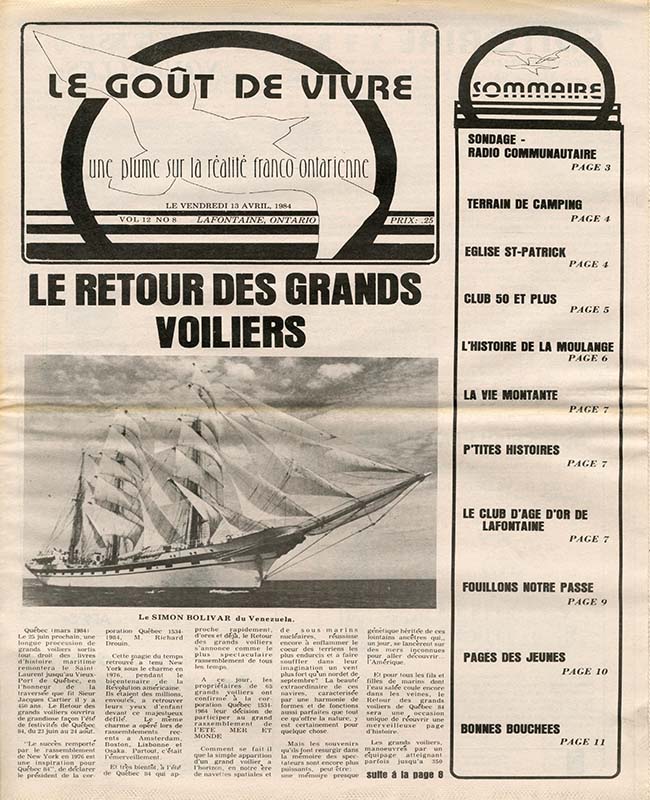 Le Goût de vivre (Vol.12 No.08) – 13 avril 1984