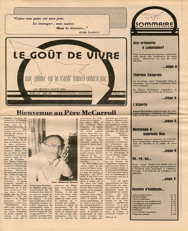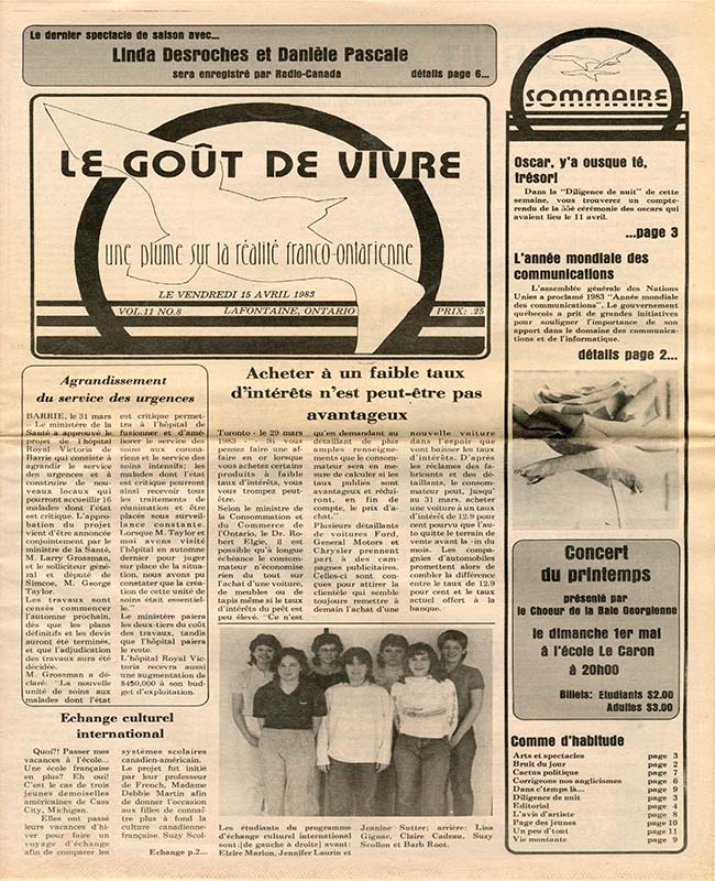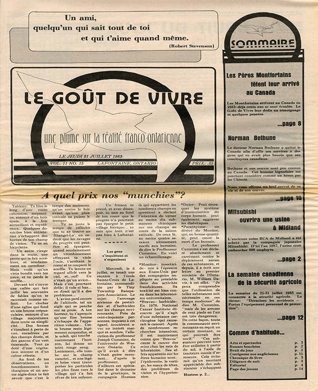 Le Goût de vivre (Vol.11 No.14) – 8 juillet 1983