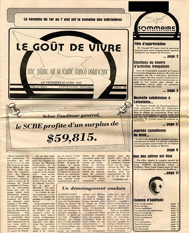 Le Goût de vivre (Vol.11 No.09) – 29 avril 1983