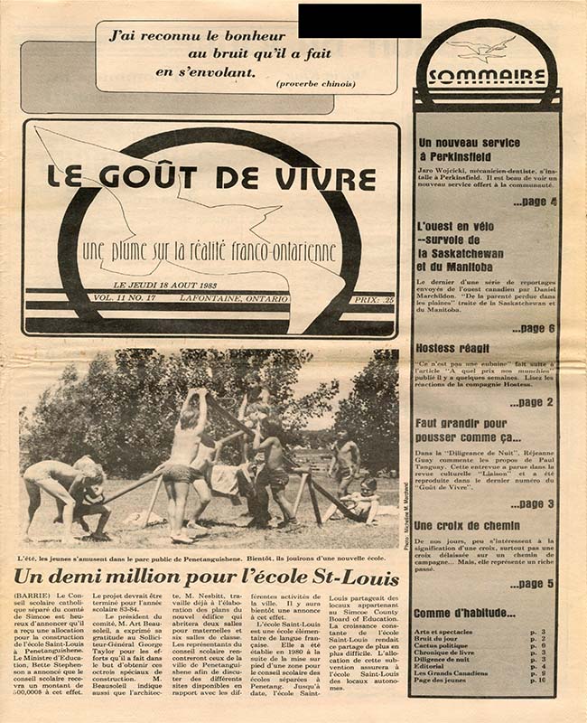 Le Goût de vivre (Vol.11 No.17) – 18 août 1983