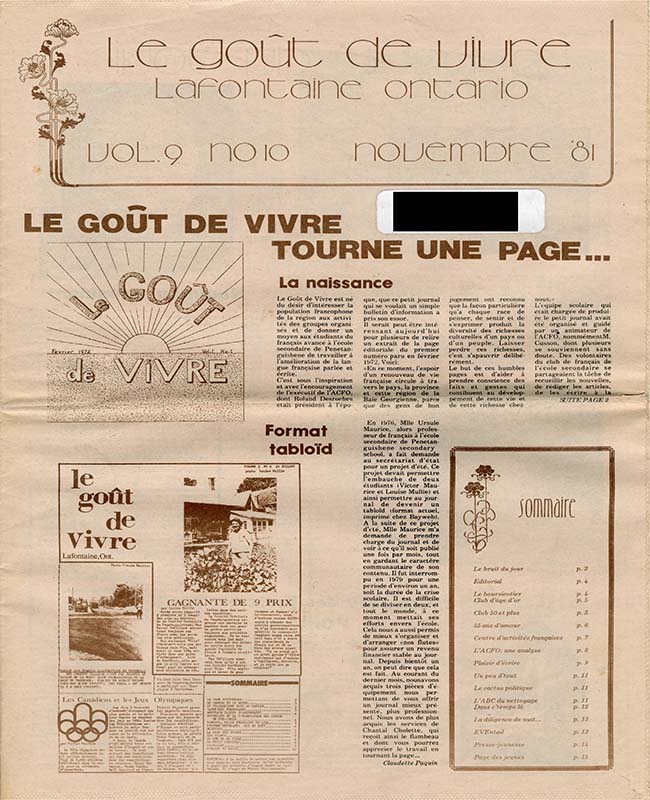 Le Goût de vivre (Vol.10 No.03) – 5 février 1982