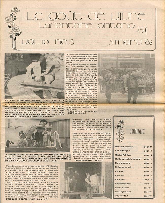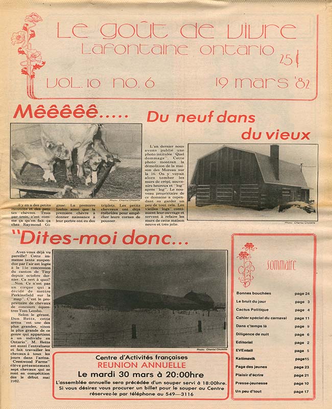 Le Goût de vivre (Vol.10 No.06) – 19 mars 1982