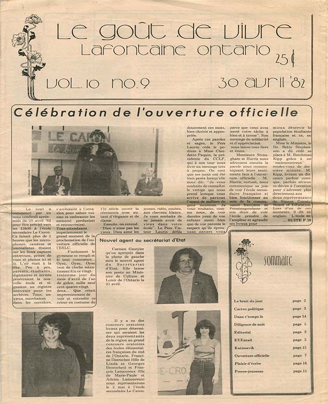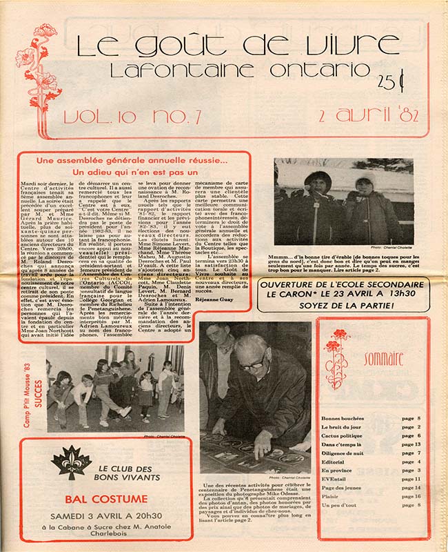 Le Goût de vivre (Vol.10 No.08) – 16 avril 1982