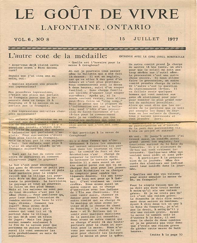 Le Goût de vivre (Vol.06 No.08) – 15 juillet 1977