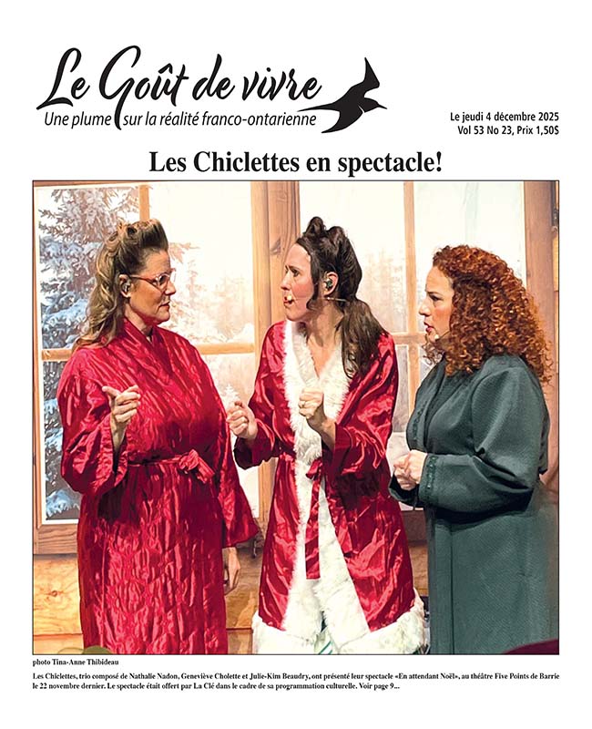 Les Chiclettes, trio composé de Nathalie Nadon, Geneviève Cholette et Julie-Kim Beaudry, ont présenté leur spectacle «En attendant Noël», au théâtre Five Points de Barrie