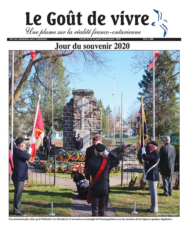 Une cérémonie plus sobre qu’à l’habitude s’est déroulée le 11 novembre au cénotaphe de Penetanguishene avec des membres de la Légion et quelques dignitaires.