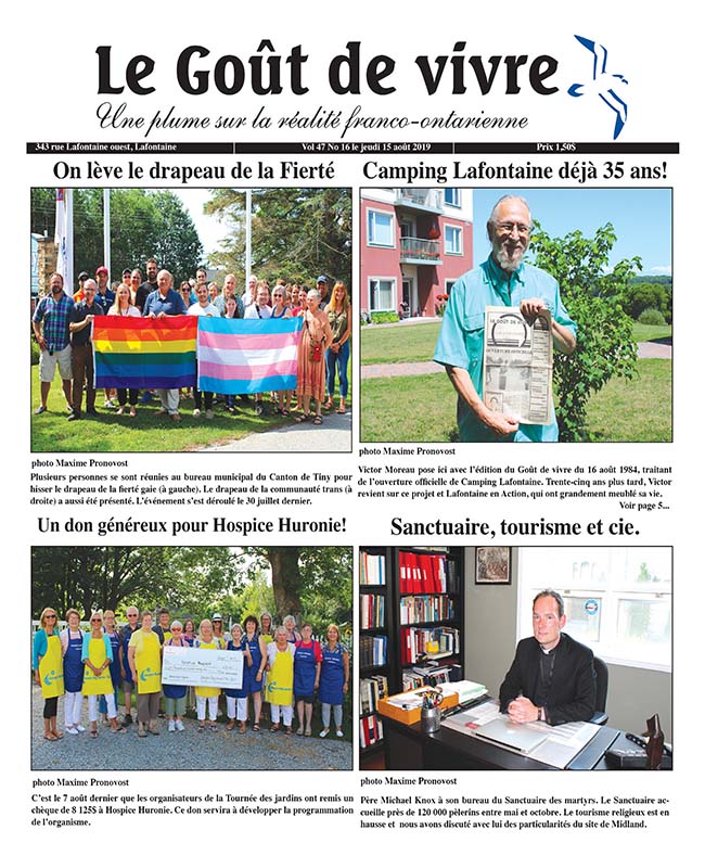 Victor Moreau pose ici avec l’édition du Goût de vivre du 16 août 1984, traitant de l’ouverture officielle de Camping Lafontaine. Trente-cinq ans plus tard,