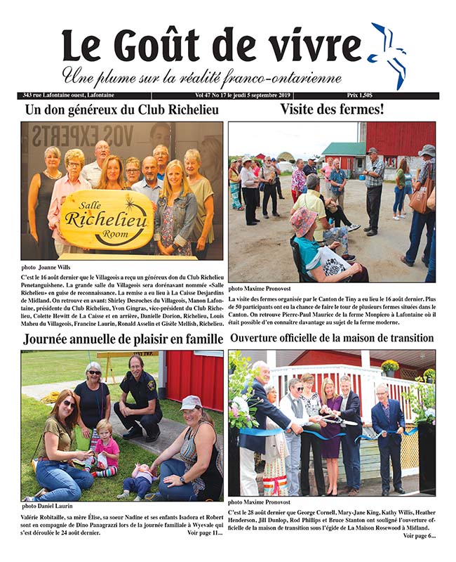 C’est le 16 août dernier que le Villageois a reçu un généreux don du Club Richelieu Penetanguishene. La grande salle du Villageois sera dorénavant nommée