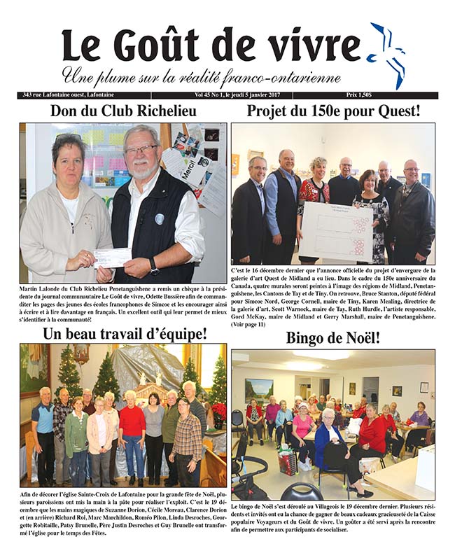 Martin Lalonde du Club Richelieu Penetanguishene a remis un chèque à la présidente du journal communautaire Le Goût de vivre, Odette Bussière afin de commanditer