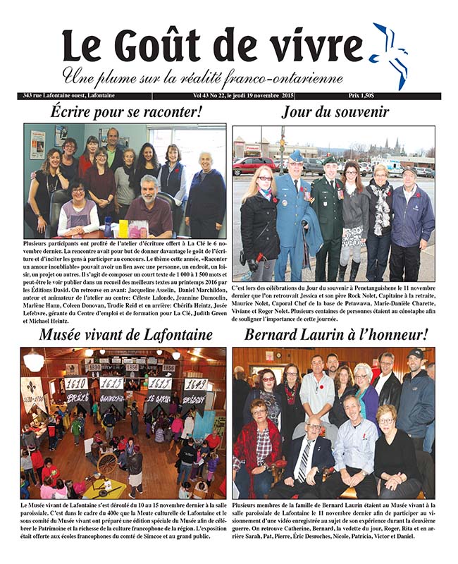 Le Musée vivant de Lafontaine s’est déroulé du 10 au 15 novembre dernier à la salle paroissiale. C’est dans le cadre du 400e que la