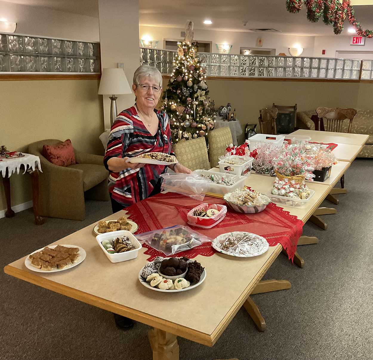 Après l’activité de partage des biscuits pour les Fêtes, Cécile Moreau prépare la table pour le thé spécial. On sort les tasses en porcelaine et les plus belles théières pour échanger (les potins, non,) les nouvelles et pour goûter aux pâtisseries que les participantes et participants ont partagées. Crédit: P. Justin Desroches